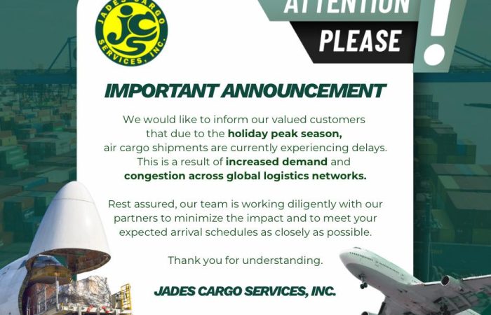 But don’t worry! Our Jades Cargo team is working round-the-clock with our partners to manage the surge and keep your packages moving as smoothly as possible. 💨✨