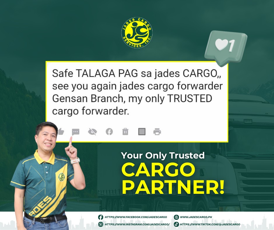 Maraming salamat sa patuloy na tiwala, Ka-Jades! We’re honored to be your trusted cargo forwarder, ensuring every shipment is handled safely, securely, and with care. Your confidence motivates us to continue delivering reliable service you can depend on every time.